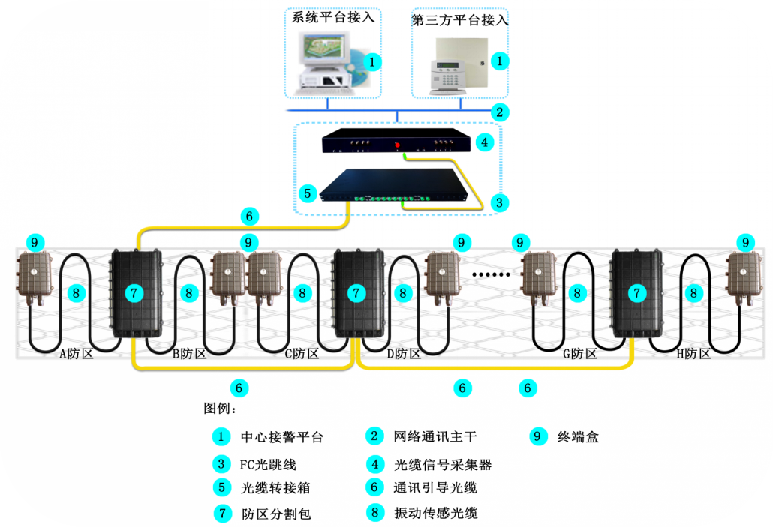 单防区探测长度:2000m;组网防区数:同网段 255个防区。
